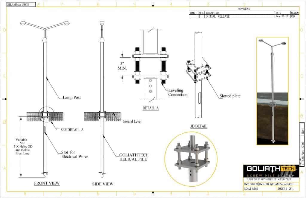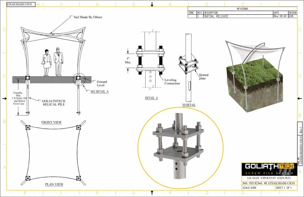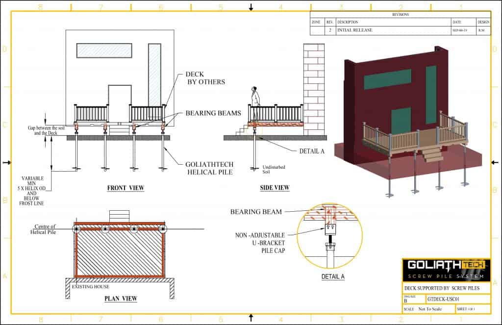 We provide sample application plans for a wide variety of projects that can benefit from helical (screw) piles. Just remember that these are provided for informational purposes only and that in order to ensure the compliance, durability, and stability of your installation, it's essential that you contact a GoliathTech certified installer near you.